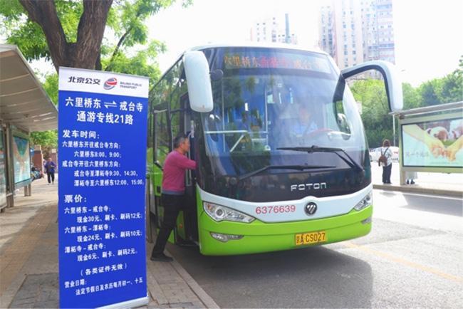 通游专线21路开往门头沟戒台寺。